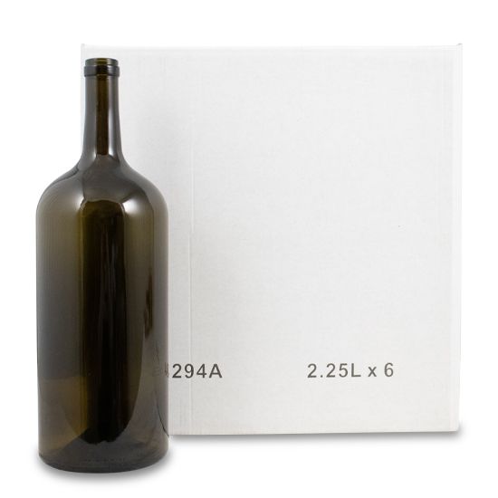 La nostra bottiglia da 2,25 l in stile Bordeaux, di grande capacità, è realizzata in vetro sodico-calcico, con un classico design a spalla larga e un corpo pesante da 1180 g per garantire la stabilità di conservazione a lungo termine. La formula brevettata del vetro verde anticato, resistente ai raggi UV, può bloccare efficacemente gli effetti ossidativi della luce sul vino.