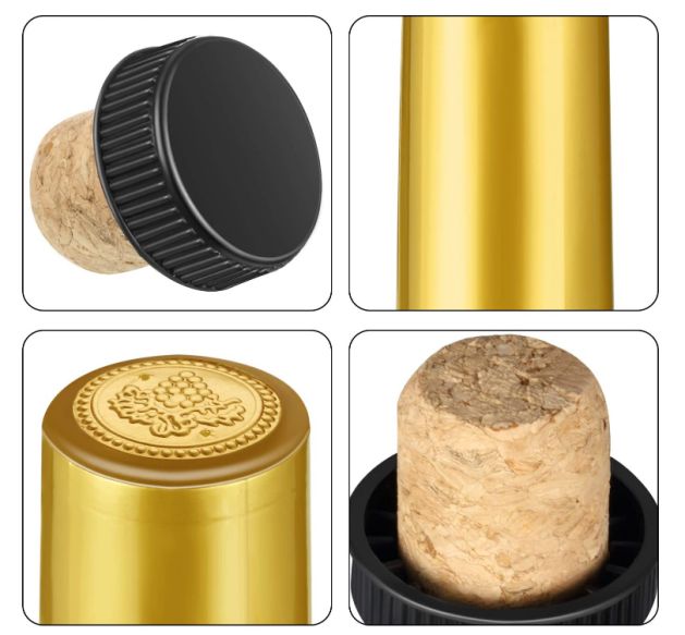 Tappo per bottiglia in composito di alluminio e plasticaProcesso di verniciatura rosso/oro/neroIdentificazione visiva del vino regalo di alta qualità